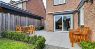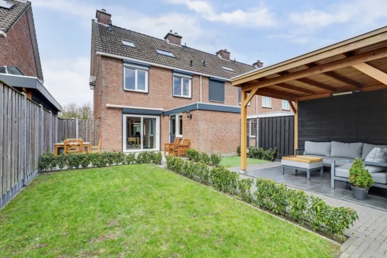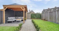 De achtertuin is verzorgd aangelegd en biedt een fijne combinatie van bestrating en groen. Direct aan de woning bevindt zich een ruim terras, ideaal voor een eettafel of loungehoek. Achter in de tuin staat een sfeervolle houten overkapping, waar u het hele jaar door beschut kunt genieten van het buitenleven. De tuin is onderhoudsvriendelijk en biedt voldoende privacy.